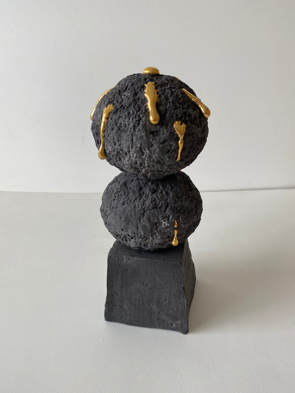 Charcoal sphere on gold folded base - Large